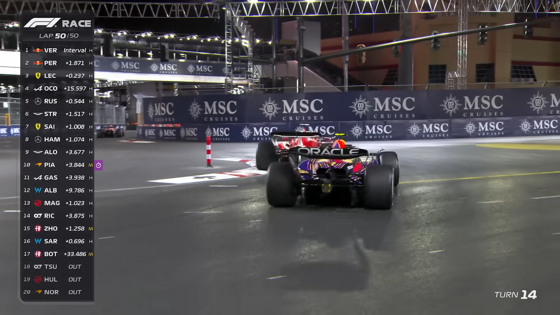클러치 상황에서 또 한끗의 아쉬움을 보이긴 했지만, 페레즈가 결국 포디움 피니쉬로 클래스를 증명해냈다. 포디움 뿐만 아니라, 드라이버 챔피언십 2위를 확정지었다는 점에서 그의 '클래스 증명'은 더욱 확실히 완료됐다. 못할 때 파격적으로 못해서 그렇지, 레드불 역대 최고의 윙맨은 그가 맞다. 레드불 역사상 최초로 드라이버 챔피언십 원-투를 달성한 시즌의 세컨드 드라이버, 세르히오 페레즈다. 물론 그렇다고 해서 내년 시트가 안전하리란 뜻은 아니다.